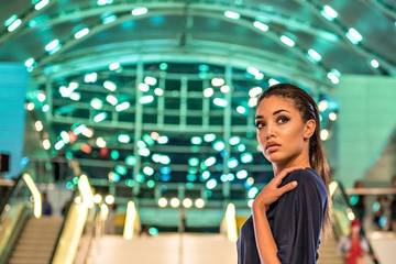 (Picture 1): Model Monet Bray poses in designer collection by Raphael Cole at the ARTIC in Anaheim photography by James Giovanni Pan