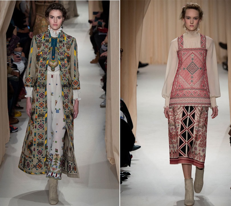 In practice that came out as a strong Russian influence in some of the folkloric patterns and pieces in gilets, pinafore dresses and peasant blouses. Also seen were corsets, both embroidered and transparent, in silk and lace.
