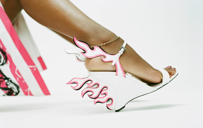 Some of the most iconic Prada creations have been updated, including the flame sandals from Spring/Summer 2012. Prada’s famous banana and mermaid prints can also find it again in the hoodies, jumpers and dresses included in the new Mytheresa collection.