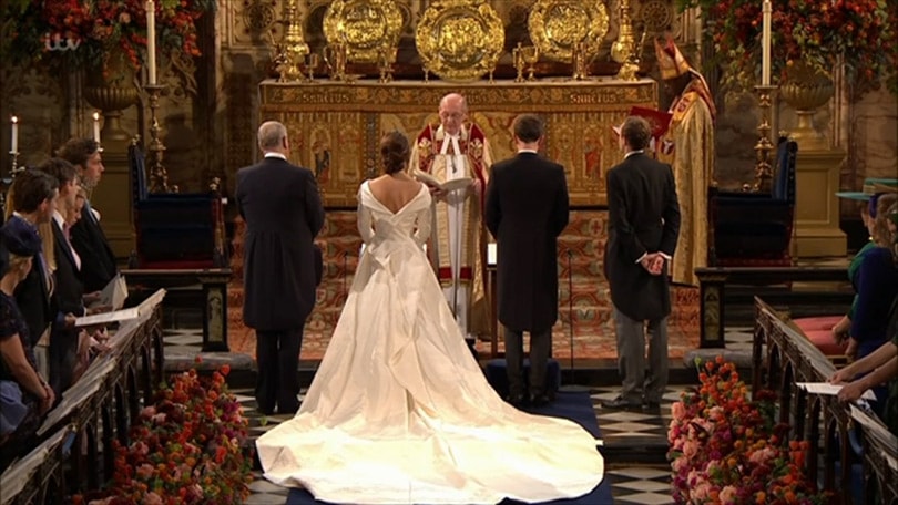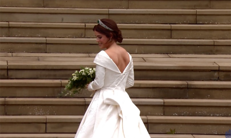 Royal fever has once again taken over Windsor for the wedding of Princess Eugenie to Jack Brooksbank and the bride arrived to the steps of St. George's Chapel in Windsor Castle, wearing a white wedding gown designed by Peter Pilotto and Christopher de Vos.