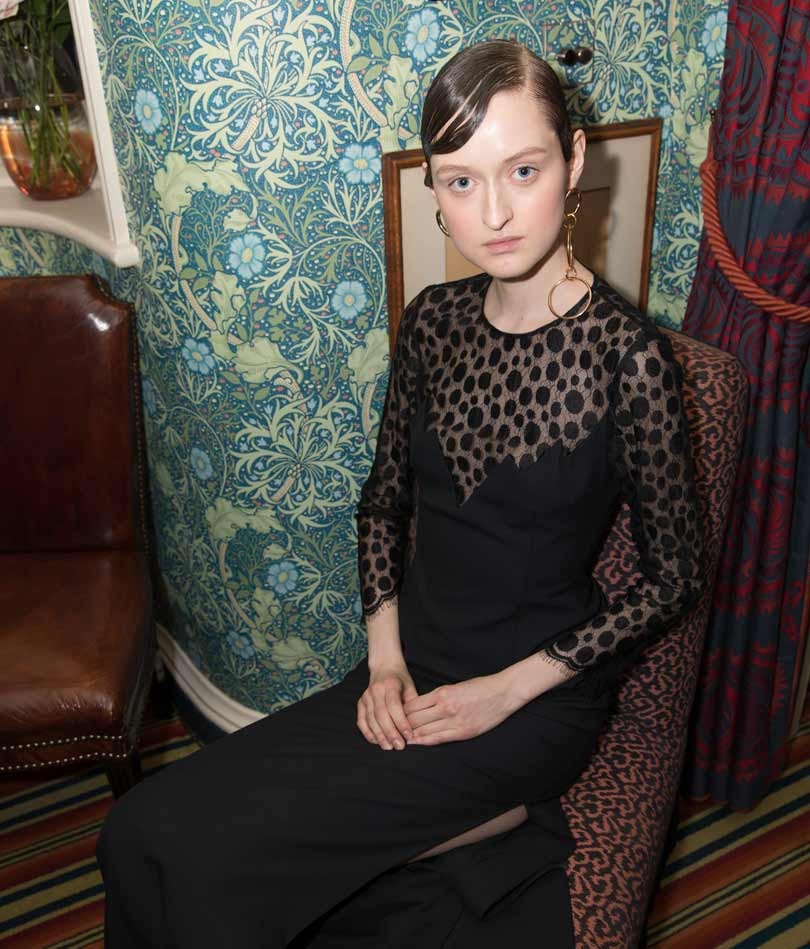 “At the same time in terms of colours, textures, and fabrics, I was also inspired by British private clubs, and those different textures and details come across in the dresses.”