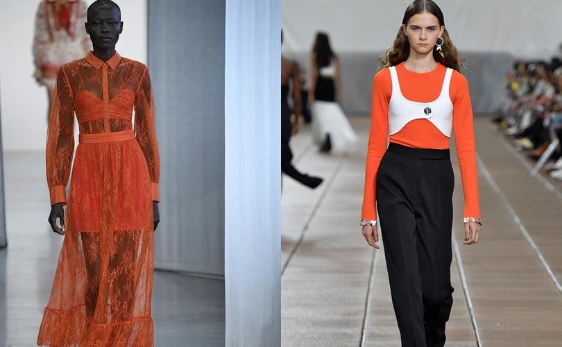 “Fiesta exudes energy, passion and excitement”, said the color authority. The shade appears in head turning dresses in the collections of Sies Markan, Priscavera and Self Portrait. 3.1 Phillip Lim also used Fiesta in four of his creations. For example, in a long-sleeve shirt combined with black pants and a white bralette top.
