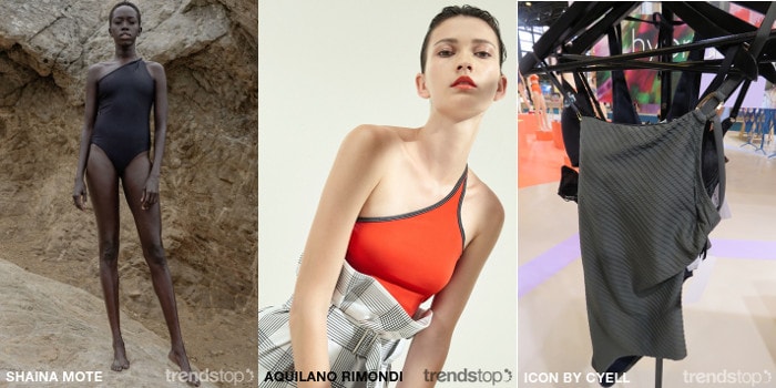 Contemporary swimwear combines fashion with performance. Streamlined silhouettes tap into the exposed shoulder trend with single asymmetric straps that compliment the contours of the body. Urban neutrals and sporty brights, minimal detailing and utilitarian hardware enhance SS18 swimwear's clean, modernist aesthetic.