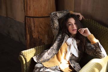 This capsule builds on the previous collection with a somewhat darker colour palette, including black, ivy green and honey mustard, with fresh hues of ivory, kit and the surprising salmon. In addition to the inspiring colour injection, the paisley print also plays an intriguing role. On soft, velvety trousers, a skinny, a shiny kimona (is this a dress or a typo) and even on a fantastic, stretch cotton suit. The Summum suit is once again available in various hues in this collection, with ivy green as a new addition. In addition to the paisley print, we see items with the classic animal design, such as trousers and skirts in a festive shiny viscose.