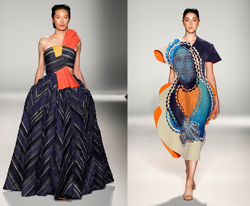 Runway highlights included Lizun's sharp-shouldered knits with sweeping train, and doll-inspired collections (paper and Barbie respectively), from Genevieve Lake whose color palette was almost thirst-quenching on the most humid of days, and Lili Shi’s clean cocoon shapes with geometric petals. For the second year running television personality Rose Ambrose, announced the winner. The 10,000 USD prize was awarded to F.I.T.’s Lili Shi.