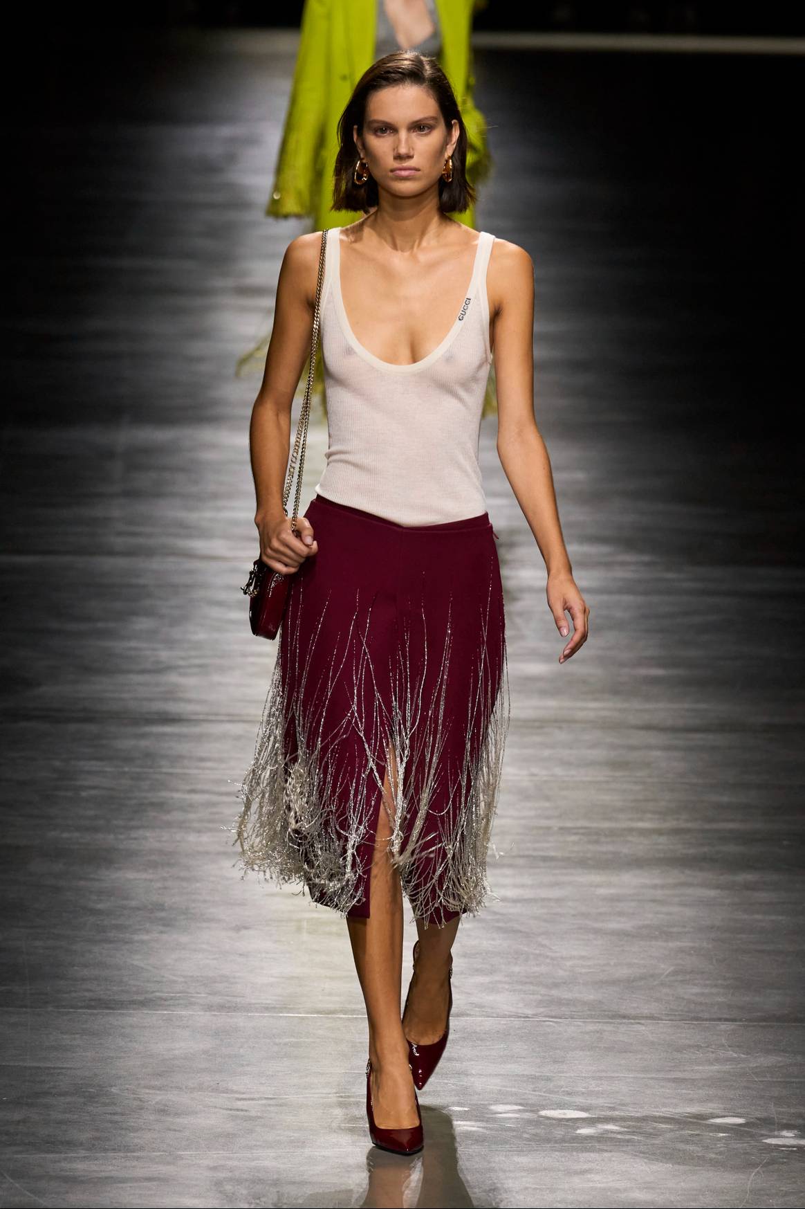 Look 20: a white ribbed cotton scoop necked tank top with the Gucci