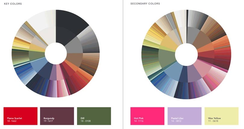 Apart from beige, deep autumnal tones such as maroons, rust, mustard and olive greens were very popular this season. Those colors were often contrasted with hot pink, another shade we’ll probably see everyone wearing soon. Hot pink was the color of this year’s Academy Awards, worn by more than 10 actresses, and consumers are already demonstrating an interest in the color.