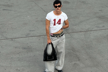 Pablo’s style is difficult to pinpoint, and that’s exactly what makes it so refreshing—it’s a blend of modern eclecticism, subtle edge, and playful nonchalance. His outfit choices reflect a clear sense of creativity and confidence. Whether it’s white jorts paired with a grey t-shirt and black leather sandals, or a dark green, beachy bag that pulls the whole look into a resort-casual zone, Pablo balances simplicity with a twist. A striped pink-and-white tee with denim and flip-flops may sound basic on paper, but paired with a structured black bag, it suddenly feels styled, intentional, and quietly cool.