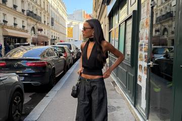 As an active runner, movement and comfort naturally inform her style. Chunky sneakers, technical running shoes and hoodies form part of her daily wardrobe, yet her outfits never feel overly sport-driven. Instead, Edwards blends performance-inspired elements with timeless staples, creating looks that feel both practical and refined. Baggy jeans, structured jackets, leather coats and puffers add dimension, while layering plays a central role in shaping her silhouette.