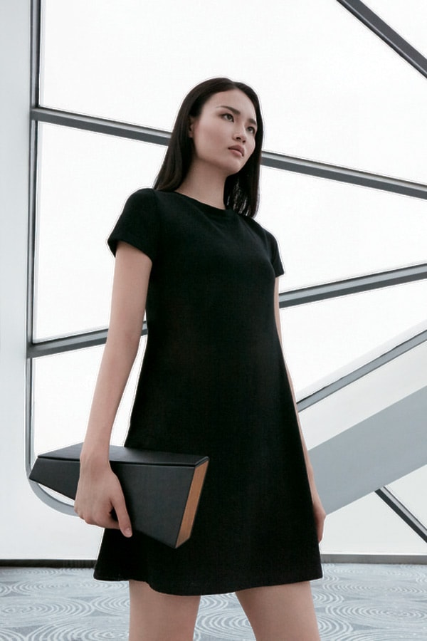 To ensure the new category sits in line with the rest of the brand’s offering for Spring/Summer 2016, Koolhaas combined the brand’s signatures with the same design technique used to make the Lo Res Car, resulting in a collection which offers the recognisable geometrical design and architectural influences United Nude is known for. “As you can see, here with the clutch the lines and form are very similar to that of the car,” added Capriglione, pointing out the clutch’s asymmetric form, hidden magnetic closures and teak wood detailing.