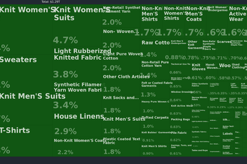 The most exported apparel products are non-knit women’s suits, knit sweaters, knit T-shirts and non-knit men’s suits.