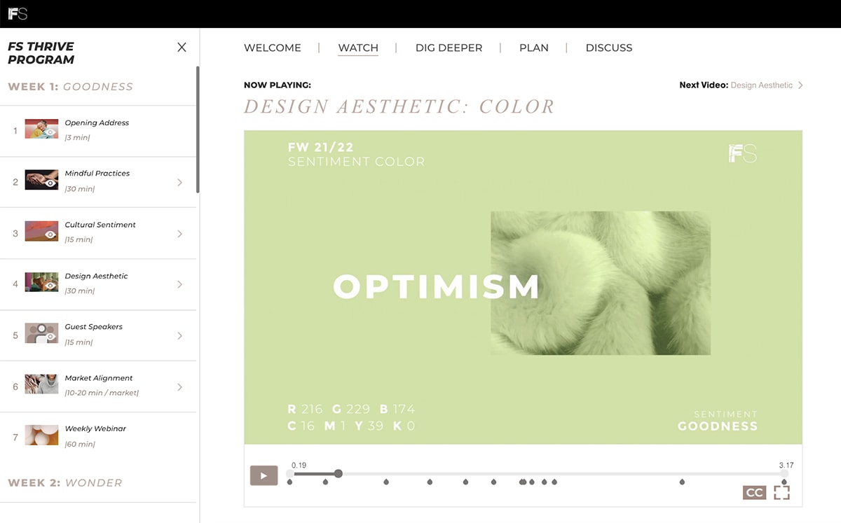As well as silhouette and color trends, the platform offers a health and wellness program, an idea conceived of one morning during Berelovich’s own meditation practice. “How can someone who’s leading a creative life not tend to themselves and still expect to be creative?” she questioned which led to the building of the Thrive program. “First you tend to yourself, your body, your psyche, and then we provide these layers of inspiration which you can consume in a different way.” A supportive resource for a creative industry which she felt had lost its ability to feel in the dash to consume information and trends, Berelovich describes it as “not so thematic but about building layers of aesthetics, color and material from the perspective of experiencing goodness all around.”