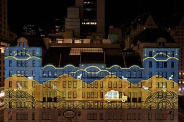 In addition, Bergdorf Goodman’s women’s store facade features an elaborate light-mapped animation that traces Loro Piana’s journey over the years, culminating in a visual transformation of the city skyline into the store’s own contours.