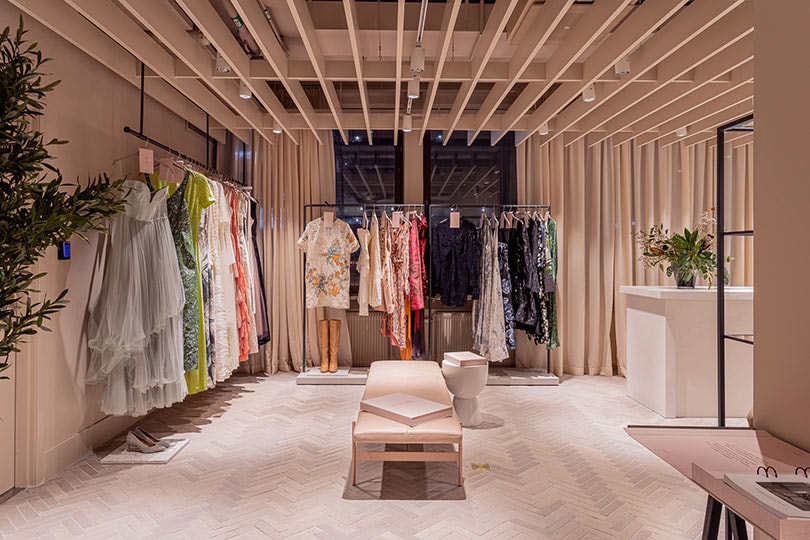 The specialty beauty bar, located on the second floor, will open earlier than the rest of the store, at half past seven in the morning. Customers are now able to go to the beauty bar before they heading off to work. The garments offered on the same floor are of course for sale, so for anyone with a clothing crisis in the morning will have a solution. In the special beauty area, people can have their nails, hair or make-up done. Or all the above. It's also possible to have a face mask at the bar. The beauty bar is also open later in the evening so that people can get a touch-up for a date, for example, as mentioned in the tour. The decor of the area sets it apart from the rest of the store. Giving off Instagram-worthy vibes with pink chairs and various floral arrangements that decorate the ceiling.