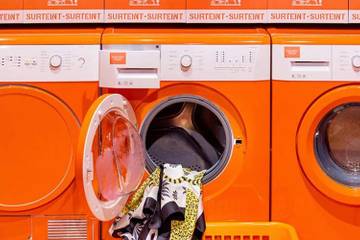 The pop-up, which first opened in Strasbourg, France last year, was developed in order to encourage Hermès customers to give their old scarves a new look by taking them to the laundromat. Entitled Hermèsmatic, the immersive experience, which features washing machines in the luxury house's signature orange, invites customers to dip-dye their scarves Hermès and treat them to restore them their original softness.