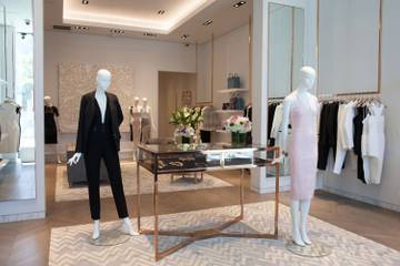 The first flagship offers the luxury ready-to-wear brand including contemporary day dresses and club-attire nightwear as well. Including accessories and more apparel that emphasizes the “woman in motion,” the brand offers trousers, separates, handbags, and leather goods. Prices for the womenswear line range from 600 to 3,500 dollars. The Los Angeles boutique neighbors Alice + Olivia and Theory on North Beverly Drive.