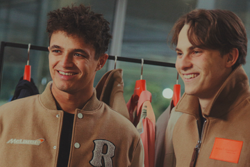 The campaign was shot at the McLaren Technology Centre, and features McLaren Formula 1 drivers Lando Norris and Oscar Piastri, along with Formula 1 presenter, Lissie Mackintosh, all wearing styles from the collection.