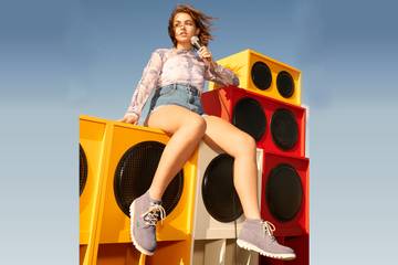 Colored leather, protruding notched XXL soles, platforms and prints: a complete range which takes its cues from the world of music.
