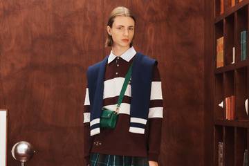 A palette rooted in the muted tones of the traditional gentleman's wardrobe is brightened by pop colours informed by classic university pennants. Capturing the lifestyle of the Ivy League dandy – from rowing sessions to studies and campus functions – the nuances render a transversal silhouette suspended between casual sportiness and preppy elegance. Crafted in materials suited to the changeable autumnal climate, the wardrobe invites versatile ways of layering while the meeting between casual and sartorial codes welcomes different levels of dressing up and down. The symbiosis is expressed in sophisticated preppy tailoring and refined collegiate leather and knitwear staples adorned with university insignia, versus garments from the sporty college wardrobe including mixed-material and tech pieces with varsity letters conceived through the House's exquisite savoir-faire.
