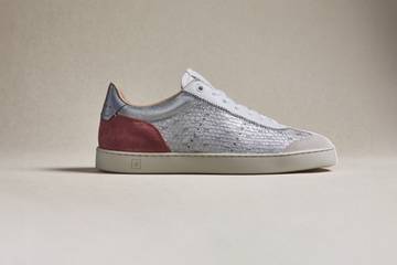 RUBIROSA footwear combines the grace of classic shoes with the comfort of sneakers. RUBIROSA Couture focuses on three styles: soccer-inspired JUDY, tennis classic ODILE and retro runner KIM. JUDY, lush and leathery, is a traditional white trainer half encased in a shimmering, silvery mesh. ODILE is overlaid with black Forster Rohner lace. The sole and heel tab is white. A spoiler in tan bonded leather sits under the heel. KIM is wrapped in a check lace, black on black. Its dark, menacing looks are sophisticated and sporty.