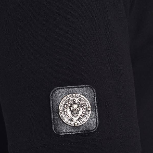 Mit gestickter Lilie auf linkem Ärmel, hochwertigem Patch in Lederoptik mit silberner Totenkopf-Niete am rechten Ärmel & Roberto Geissini Logo Aufnäher auf linker Schulter.
