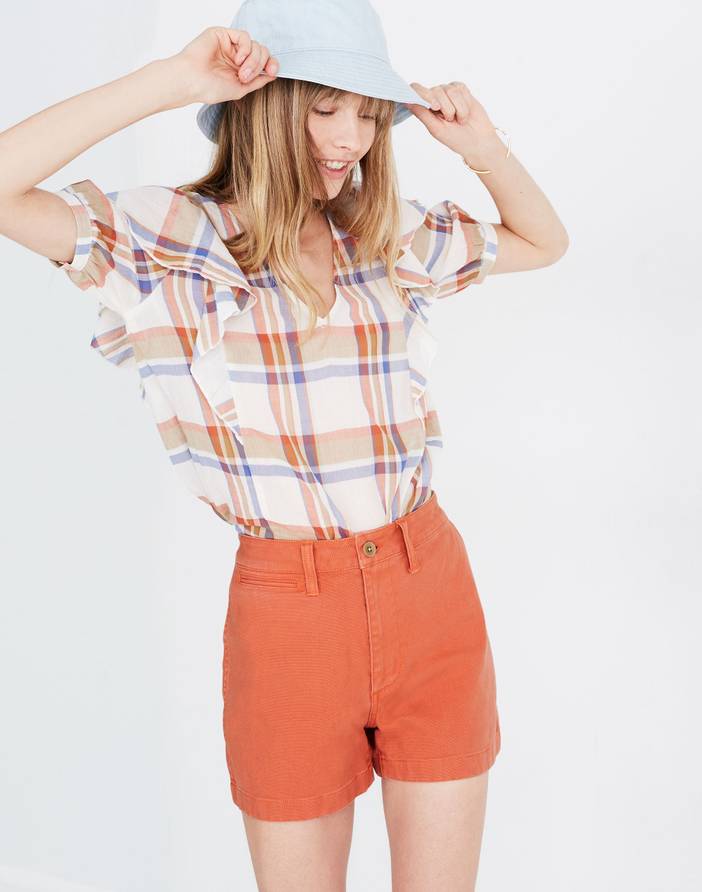 Made of just-a-tad-stretchy fabric, these '40s-inspired tailored shorts were specially engineered for an A+ rearview (the secret is in the way we fit the high waist). High rise, fitted through hip and thigh.Front rise: 11"; inseam: 3 1/2".98% cotton/2% elastane.Machine wash.Import.Select stores.