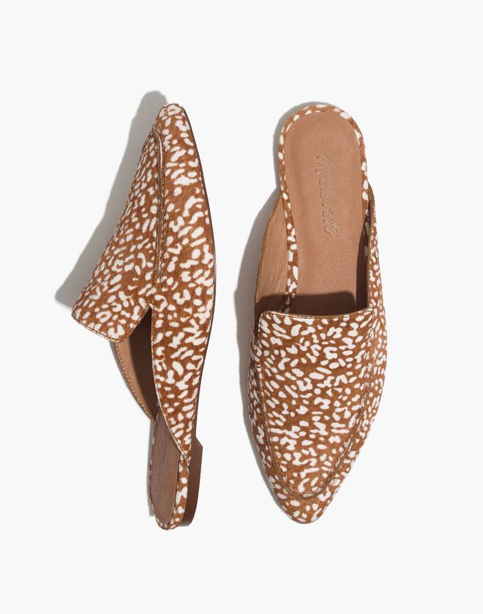 We reworked our best-selling loafer mules, turning them into softer, bendier skimmers (and, yup, they still do the casual-meets-dressy thing in printed calf hair). Cushiness alert: Our MWL Cloudlift Lite padding feels like walking on a...well, you know. When you select your size, "H" equals a half size.Leather, calf hair upper.Man-made sole.Import.Madewell.com only.