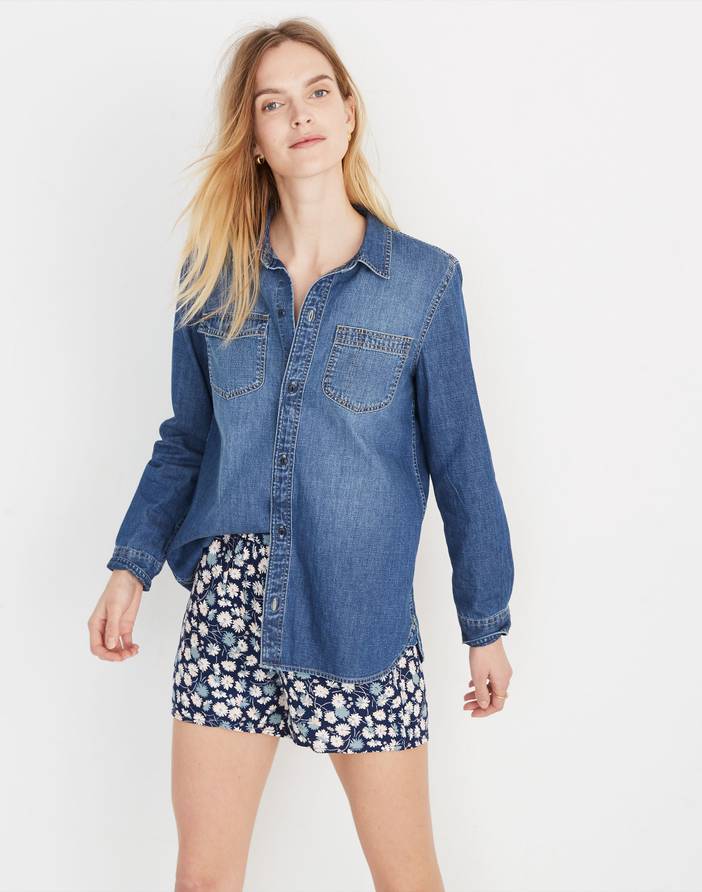 Our classic tomboy button-down returns in denim with cool front pocket details. Forever perfect, this is an ex-boyfriend shirt with a next boyfriend attitude. True to size.Body length: 28".Cotton.Machine wash.Import.Madewell.com only.