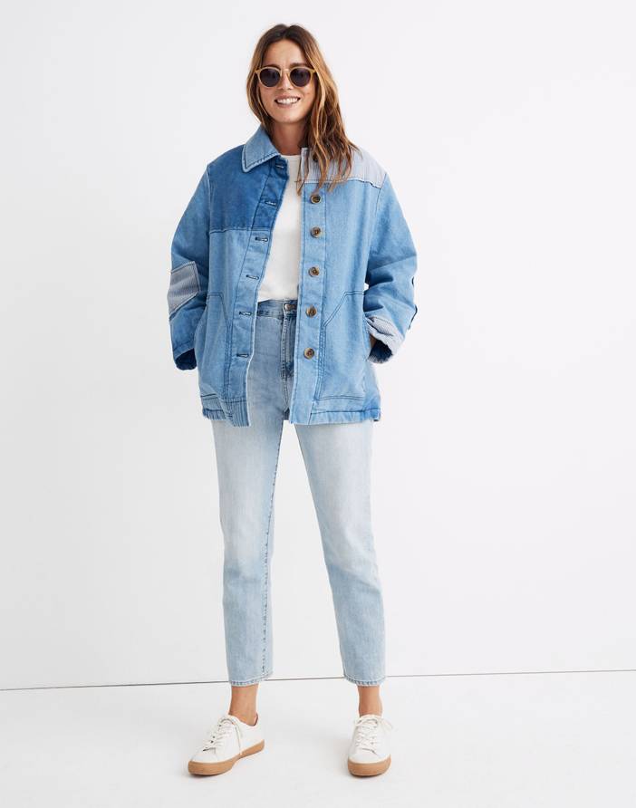 Brooklyn-based Caron Callahan is known for making brilliantly functional, undeniably feminine clothes. (Her promise? Everything she designs looks good with flat shoes.) Patched with railroad stripes, this workwear-inspired denim jacket is perfect for crisp fall days. Regular fit.Cotton.Made in the USA.Madewell.com only.