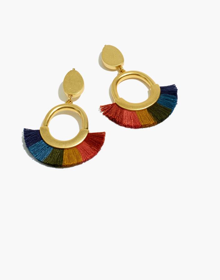 Fringed and fabulous, these dangly statement earrings prove that pairing texture with some vintage-y shimmer is a killer combination. 1 1/2" x 2 1/4".Gold-plated brass, poly sewing thread, cubic zirconia.Sterling silver posts are naturally soft due to the high silver content (just bend 'em back into shape if they get out of whack).Clean your jewelry after each wearing with a soft cloth.Import.