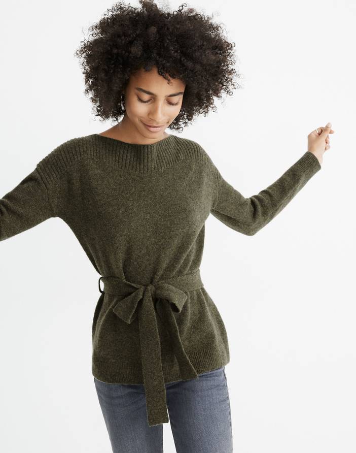 With a flattering boatneck and a removable sash belt, this supersoft sweater is the cold-weather office top of your dreams. Wear it with slim pants and loafers for a timelessly cool look. Slightly oversized fit.Body length: 23 3/4".Nylon/wool/alpaca/elastane.Supersoft.Hand wash.Import.Madewell.com only.