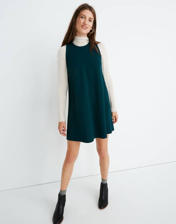 Inspired by the idea that everything should be as comfy as a tee, our Texture & Thread collection combines truly touchable fabrics with pulled-together shapes. This swingy crepe tank dress is ridiculously versatile—wear it on its own, or layer it over tights and a turtleneck for a classically cool office look. Falls 35" from high point of shoulder (based on size M).Poly/elastane.Machine wash.Import.Madewell.com only.
