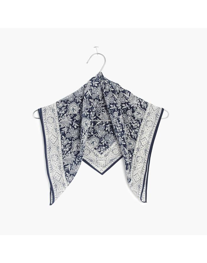 A silk version of our best-selling bandana, you can wear it as a handkerchief, tie it onto a tote, wrap it around your wrist... trust us, you'll never tire of the ways to wear this timeless scarf. 21 1/2"L x 21 1/2"W.Silk.Dry clean.Import.
