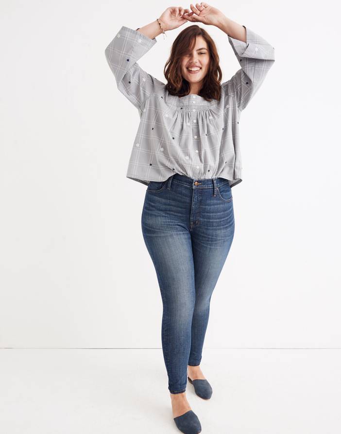 Because each woman's shape is unique, we've updated our signature high-rise style with a cool new invention—an adjustable waistband that allows a customizable fit (hey, jeans should change to suit your body, not the other way around). Sit above hip, fitted through hip and thigh, with a skinny leg.Front rise: 12 3/8"; inseam: 28 1/2"; leg opening for size 25: 11 1/4".Do Well: We partner with the Better Cotton Initiative to improve cotton farming globally.Premium 88% cotton/8% poly/4% elastane Cone® denim.Magic Pockets.Machine wash.Import.Madewell.com only.