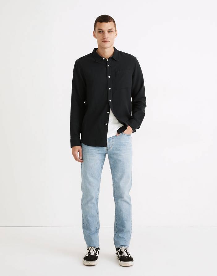 The cut: Fitted through the hip and thigh with a straight leg, these are classic, can't-go-wrong slim jeans. The fabric: Premium Authentic Flex denim combines a rigid look with all the comfort of stretch. Do Well: For each pair made at the Fair Trade Certified™ Jade factory, we contribute to a Community Development Fund managed by the workers.99% cotton/1% elastane denim.Cone® mill.Midweight: 13 oz.Zip fly.Rise: 10 1/2"; leg opening: 14".Machine wash.Import.