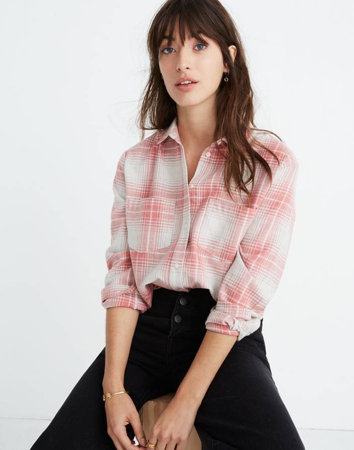 Our easy oversized button-down is back complete with hand-warming pockets. Made of irresistibly touchable flannel in pink plaid, it's the ultimate stay-cozy-all-season shirt. Slightly oversized fit.Body length: 28 1/4".Cotton/viscose.Machine wash.Import.