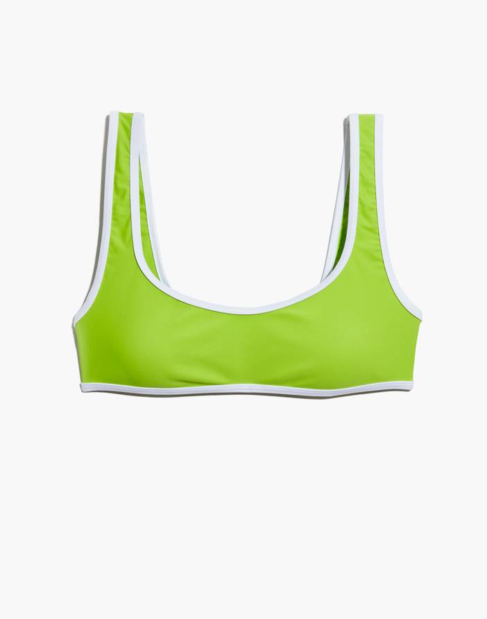 Founded on a beachy stretch of the Hamptons, Solid & Striped bathing suits are made of top-quality fabrics in shapes made to last. Their claim to fame? Timeless, oh-so-sexy swimwear like this exclusive tipped bralette bikini top that can only be found at Madewell.Polyamide/elastane.Hand wash.Import.Madewell.com only.