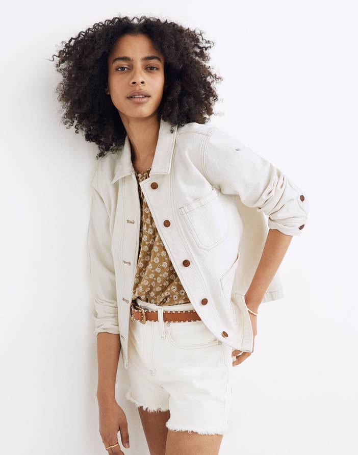 Made of 100% cotton denim, this lightweight chore jacket can swap in for a blazer (meaning, it works indoors and out). Regular fit.Body length: 24 1/4".Do Well: We partner with the Better Cotton Initiative to improve cotton farming globally.100% cotton denim.Machine wash.Import.Select stores.