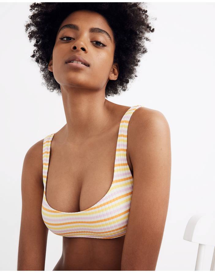 Founded on a beachy stretch of the Hamptons, Solid & Striped bathing suits are made of top-quality fabrics in shapes made to last. Their claim to fame? Timeless, oh-so-sexy swimwear like this bikini top in exclusive rainbow stripes (complete the two-piece with the matching bottom). Polyamide/elastane.Hand wash.Import.Madewell.com only.