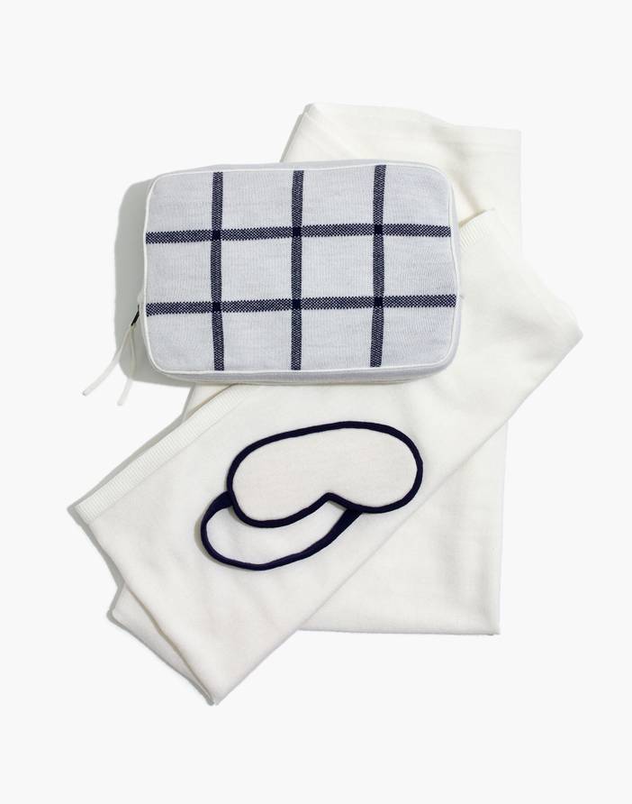 We teamed up with the bedding experts at Parachute on a limited-edition travel set made for catching zzz's or catching flights. Made of supersoft merino wool, this cozy kit includes a blanket and an eye mask in a matching carrying case. Includes 7"L x 11"W travel case with 60"L x 42"W blanket and eye mask.Merino wool.Dry clean.Import.Madewell.com only.