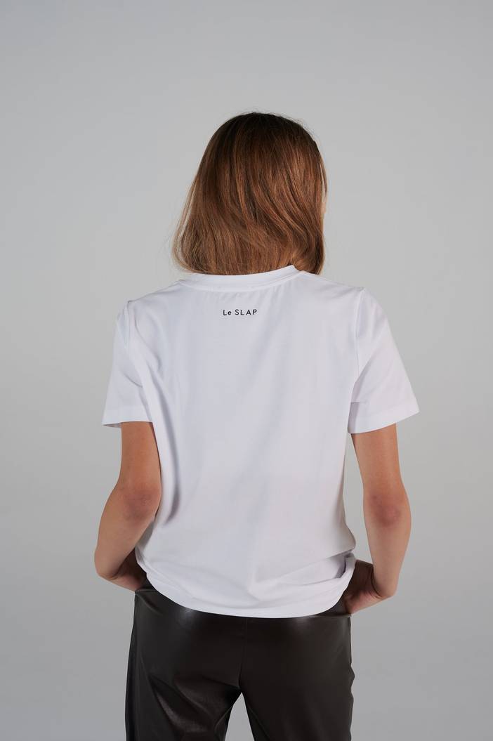 This white Le SLAP LIFETIME line logo cotton T-shirt features short sleeves, ribbed crew neck, slim fit and bold contrasting Le SLAP wording print to the back. As Gilbert K. Chesterton once said, ‘White... is not a mere absence of colour; it is a shining and affirmative thing.’ Just like 'Pride and Prejudice', Pizza Margherita and 'Bridget's Diary', this Le SLAP LIFETIME tee is a bonafide classic, so let it stay in your wardrobes always and forever.