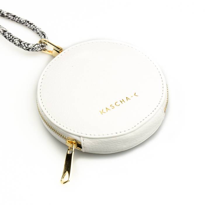 Leather wallet de Rond White. For all your money and cards, easy click on your Phonecord. This wallet is two centimeters thick. The intersection is eleven centimeters.