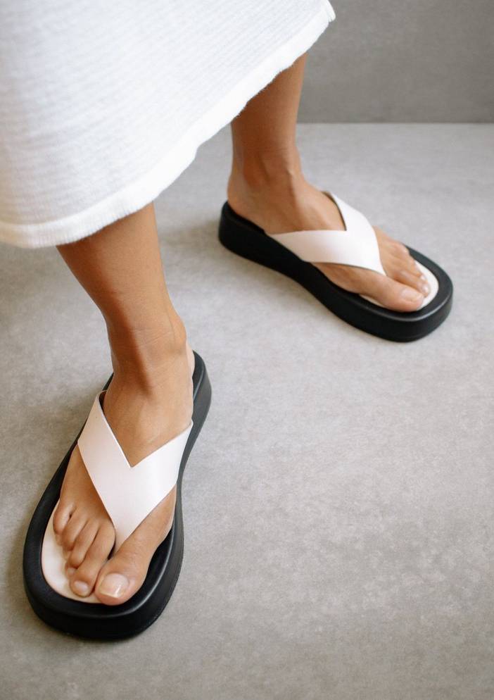 Flat sandal inspired by the new elevated flip flop aesthetic. Strapped around the ankle with thin gladiator style straps, featuring an anatomical sole.
