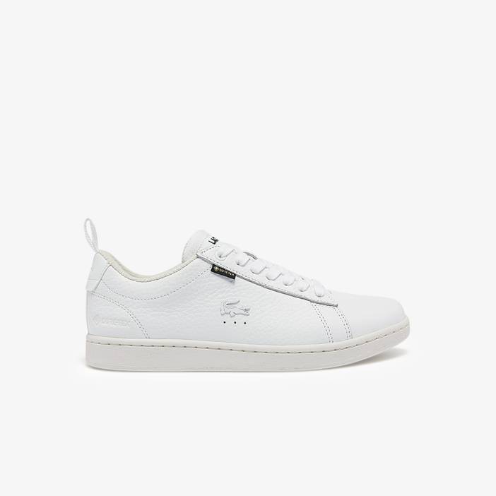 Der Carnaby Evo von LACOSTE ist ein schlichter Tennis-Sneaker, der Tenniskultur mit einer modernen Eleganz vereint. Das GTX Modell zeigt sich diese Saison mit einem funktionellen Fokus, ideal für das feuchte Wetter. Das Obermaterial ist aus wasserfestem Leder mit gewalkter Textur gefertigt, für eine Premium-Ästhetik. Wasserabweisende Gore-Tex-Elemente und eine innovative innere Membran halten den Fuß trocken, während die resistente Außensohle für perfekten Halt auf nasse Flächen sorgt.