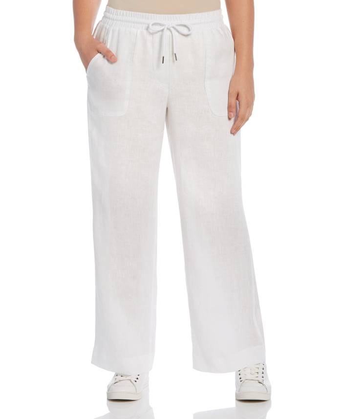 Elevate your everyday outfits with the effortlessly sophisticated look and feel of these Rafaella linen pants for women. Lightweight and breathable linen fabric with a modern wide - leg design helps you keep your cool, even as the weather heats up. These linen pants are crafted with an elasticated drawstring waistband for easy pull - on wear and the side and back pockets provide ample storage space for small essentials. 100% Linen Breathable 100% Linen Fabric Regular Fit With 30â Inseam And Wide Legs For All - Day Comfort Pull - On Style With Elasticated Drawstring Waist For Easy Wear Functional Side And Back Pockets For On - The - Go Storage Machine Wash Imported | Rafaella Women's Wide Leg Drawstring Linen Pants in White Black, Size Medium, 100% Linen