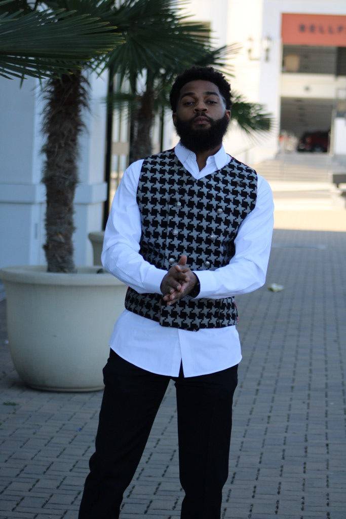Houndstooth Double Breasted Vest Black & Silver w/Floral Back