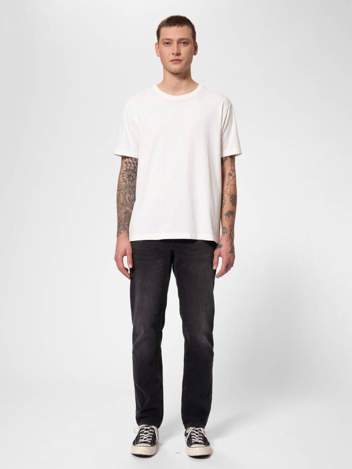 Regular fit jeans with a tapered leg made in organic denim. These jeans have been gently washed, which has preserved much of the color while it has rendered subtle and beautiful shade differences at the seams. The soft abrasions and wear marks have added mid-grey highlights and revealed the structure of the denim. In all its simplicity these dark grey jeans have something marvelously beautiful to them.