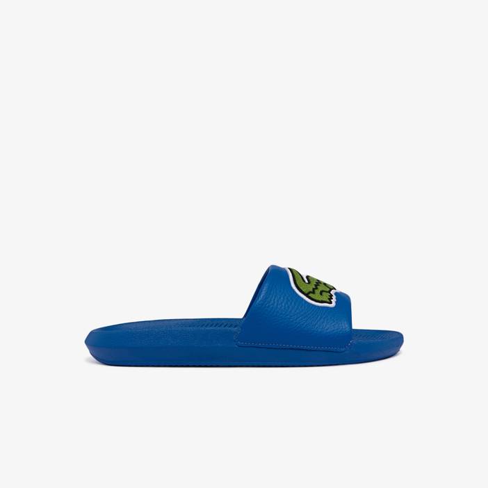 Der berühmte Croco Slide von LACOSTE kehrt diese Saison zurück, für einen perfekten Urlaub oder zum Entspannen zuhause. Diese leichten Schlappen sind aus wasserabweisendem Obermaterial gefertigt, mit einer Außensohle für Strand und Pool. Das geformte Fußbett macht aus dem Teil die beste Option für Spaziergänge. Im markanten Blau ausgeführt, wird der Riemen mit einem extragroßen Krokodil verziert.