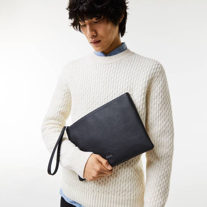 Herren Clutch mit Armbandschlaufe aus genarbtem glattem Leder