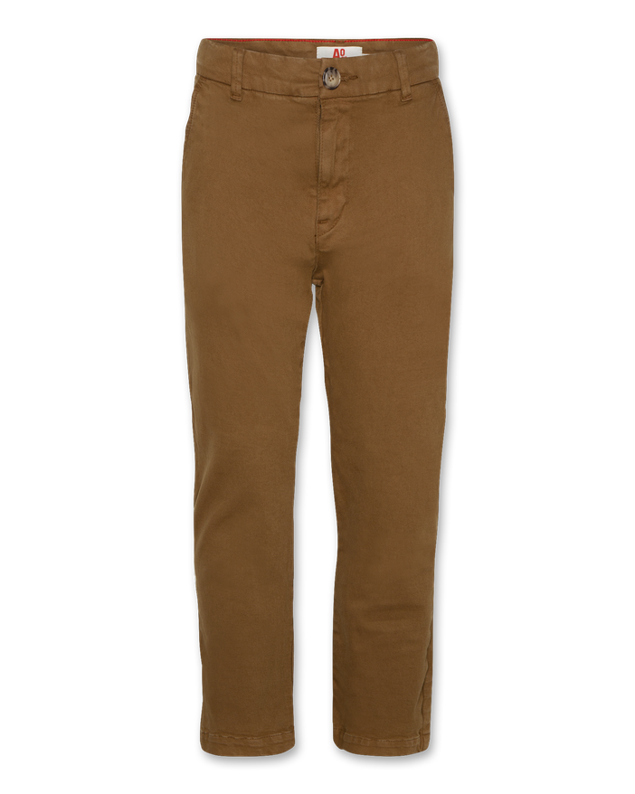 Not to be missed in our new winter collection. Our all time classic and most loved AO76 pants; our BARRY chino. Why? Because it's just a beautiful classic piece, has a super comfortable small and straight fit with handy costume pockets on the side and an easy adjustable waistband. High quality cotton with a little bit of spandex to insure good mobility. This winter available in no less than four basic colours for high combinability. A piece indispensable in every kids closet. You'll love it !